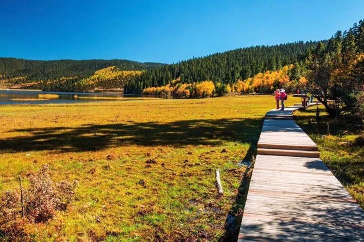 中餐后前往【普达措国家森林公园】(游览时间约180分钟,含环保车)普达措国家公园是一个无任何污染的童话世界,湖清清,天湛蓝,林涛载水声,鸟语伴花香,一年四季景色各不相同。,漫游花海草甸,走进森林成毡的净土,赏雪域高原上的美丽湖泊属都湖,观赏茂密原始森林。