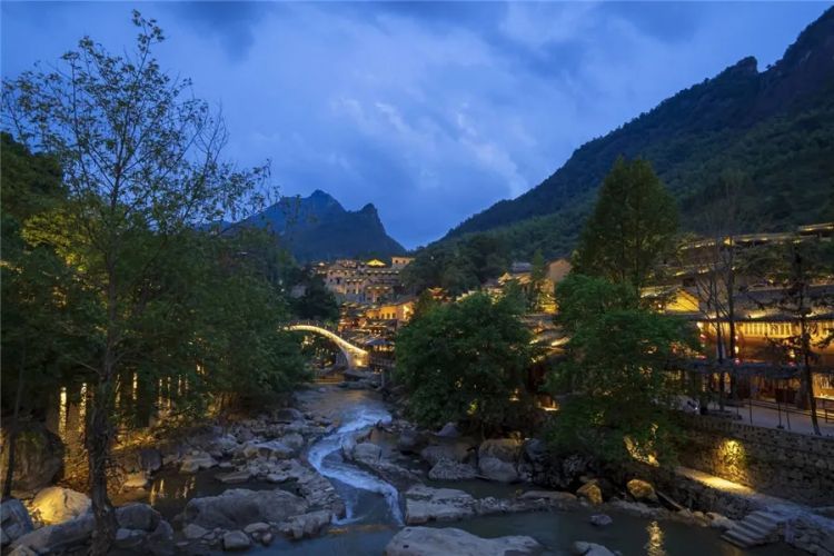 拥抱林木 ,将七彩余光照进瀑布 ,融入溪流 ,幻影成仙”。夜幕下的望仙谷灯火通明 ,从高处俯 瞰 ,整个山谷流光溢彩 ,灯光亮起的一瞬间 ,一整个惊艳住 ,悬崖边的房子和夜晚灯火通明的夜景集 市 ,仿佛一下带您进了动画里的世界。这里的民俗文化丰富多彩 ,桥灯、庙会、傩舞、板龙灯 ,稻米 习俗 ....... 人文风情引人注目。入住望仙谷外民宿。