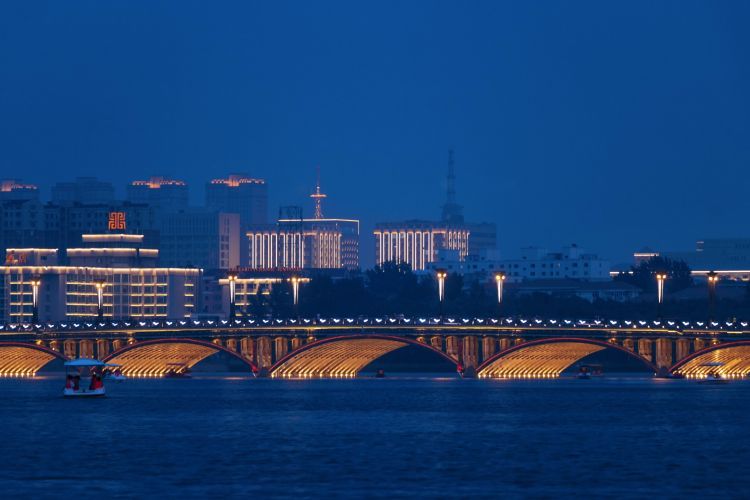 【北山公园】峰峦叠翠,湖波荡漾。 亭台楼阁,掩映其间;拾阶而上,观泛雪堂、游【北山古庙群】。由关帝庙、药王庙、坎离宫、组成,是吉林zui大的宗教活动场所。昔日曾有“千山寺庙甲东北,吉林庙会胜千山之说”。玉皇阁是北山上zui宏伟的建筑,雕梁画栋、美奂美仑。
